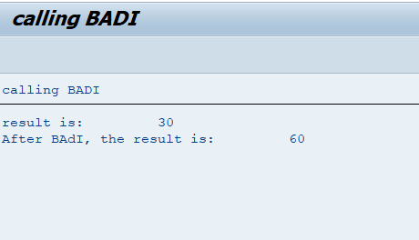 result = lv_result.WRITE: / ‘After BAdI, the result is:’ , lv_result.